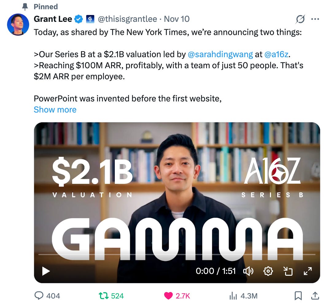 Gamma: Series B at a $2.1B valuation led by a16z